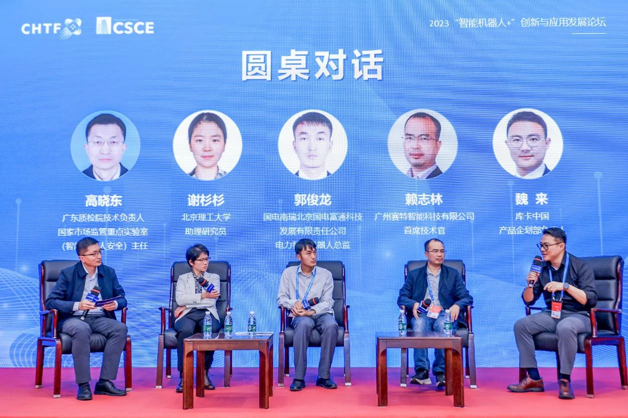 论坛为“工业机器人能效等级认证”和“企业标准‘领跑者’”获证企业颁发证书。华南理工大学教授张宪民,北京理工大学助理研究员谢杉杉,国电南瑞科技股份有限公司电力智能机器人总监郭俊龙,广州赛特智能科技有限公司首席技术官赖志林,库卡中国产品企划部负责人魏来,广东质检院技术负责人、智能机器人安全国家市场监管重点实验室主任高晓东等专家学者做主题报告,并以“智能机器人加速:技术、质量、应用”为主题进行圆桌对话。